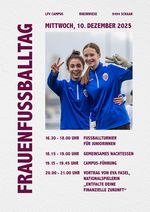 Zum sechsten Mal treffen sich Liechtensteins Fussballerinnen zu einem Frauenfussballtag. Auf der umgebauten Rheinwiese in Schaan wird ein abwechslungsreiches Programm mit Fussballturnier, gemeinsamem Nachtessen, der Führung durch den neuen LFV Campus und einem Vortrag geboten.